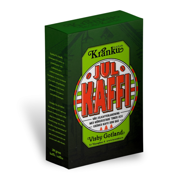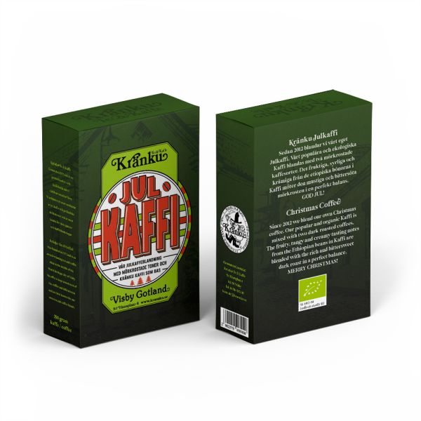 Sedan 2012 blandar vi vårt eget Julkaffi. Vårt populära och ekologiska Kaffi blandas med två mörkrostade kaffesorter. Det fruktiga, syrliga och krämiga från de etiopiska bönorna i Kaffi möter den mustiga och bittersöta mörkrosten i en perfekt balans.